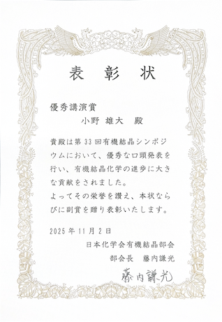 優秀講演賞: 小野雄大