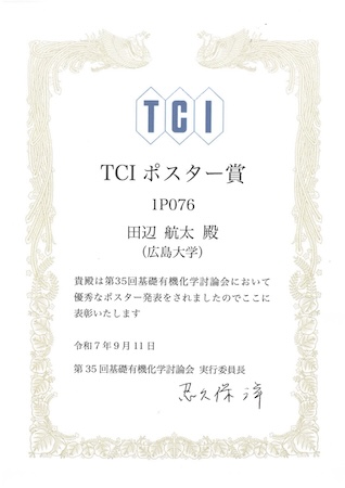 日本化学会中国四国支部支部長賞:吉田真也