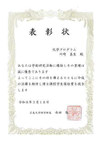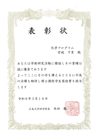 博士課程学生奨励賞(広島大学理学部)