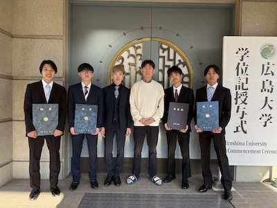 令和7年度広島大学学位記授与式が行われました。当研究室より5名の学生が卒業し、2名の学生が博士前期課程を修了しました。おめでとうございます!
